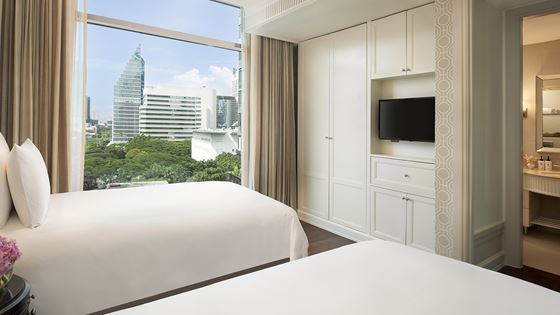 Light and space flow through this elegant suite, where two restful bedrooms and a generous open-plan living area invite easy living. Calming tones and refined details create a peaceful city escape, perfect for families or friends seeking a quiet moment in the heart of Bangkok.